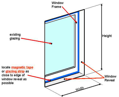 Measuring Tips We offer a free cut to size service. When ordering just tell us the dimensions you need the glazing sheet cut to. The secondary glazing panel needs to cover the glass of your window plus at least the width of your fixings. If you want the secondary glazing to go up to the outside edge of the recess please ensure you allow some tolerance space incase the wall isn't square etc. You may find our measurement converter useful.. If you are using the OM25 magnetic tape this the size the glazing sheet needs to be cut to. The tapes are 13mm wide so ensure there is enough space on the frame to accommodate this. If you are using the Easyfix flexible edging please allow space for the clips . If you deduct 22mm per dimension that should be sufficient. If you are using Superglaze ,the screw side of the strip takes up 10mm so deduct 20mm per dimension from the external dimensions of the window frame/outside edge of where you want the secondary glazing frame to sit. It is important that there is a clean flat mountable surface of 20mm all the way round to ensure a good fit. Please ensure that all window furniture e.g. handles etc fit within the recess. It is important that there is a flat surface all the way round to ensure a good fit. Please ensure that all window furniture e.g. handles etc fit within the recess. |
